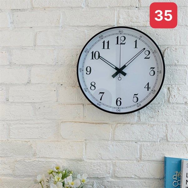 Đồng hồ treo tường mặt đen trắng viền đen Size 35 cm
