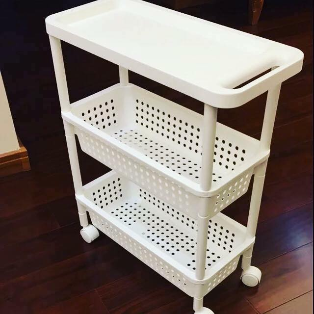 - Công dụng: Kệ được thiết kế 3 tầng, có bánh xe dễ dàng di chuyển. Phù hợp để các vật dụng trong nhà bếp, phòng khách.