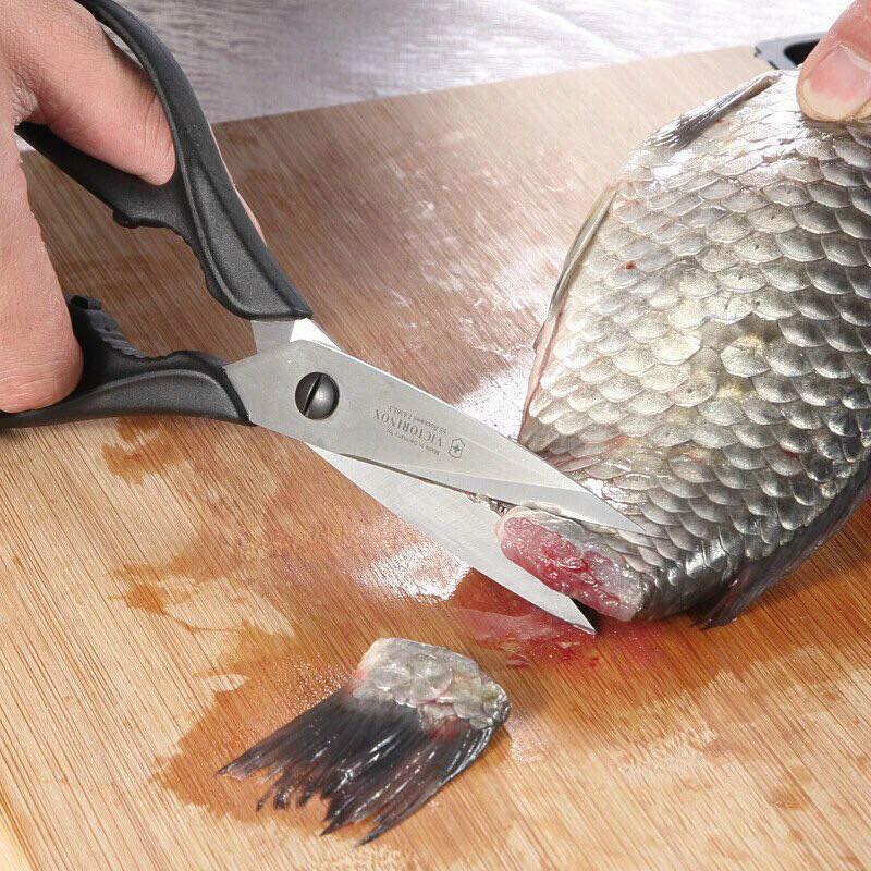 Kéo làm bếp đa năng Victorinox là một dụng cụ nhà bếp thực sự toàn diện. Lưỡi kéo được làm từ thép không gỉ đặc biệt cứng và có những răng cưa siêu nhỏ. Tay cầm thiết kế công thái học, thoải mái nhưng chắc chắn và được làm từ vật liệu tổng hợp không thể phá vỡ.