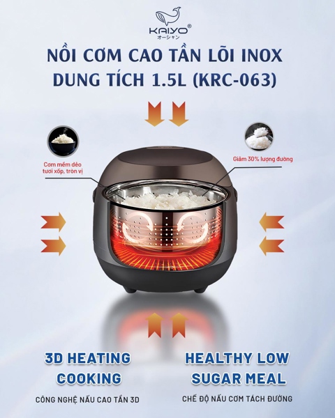 NỒI CƠM CAO TẦN TÁCH ĐƯỜNG LÕI INOX KAIYO, DUNG TÍCH 1,5L, MODEL KRC-063